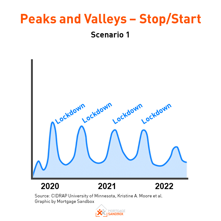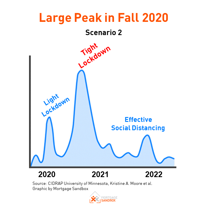 At Mortgage Sandbox, we are placing greater emphasis on the forecasts that include a ‘second wave” of infection because, based on our analysis of published epidemiological research, we believe this is a realistic outcome.