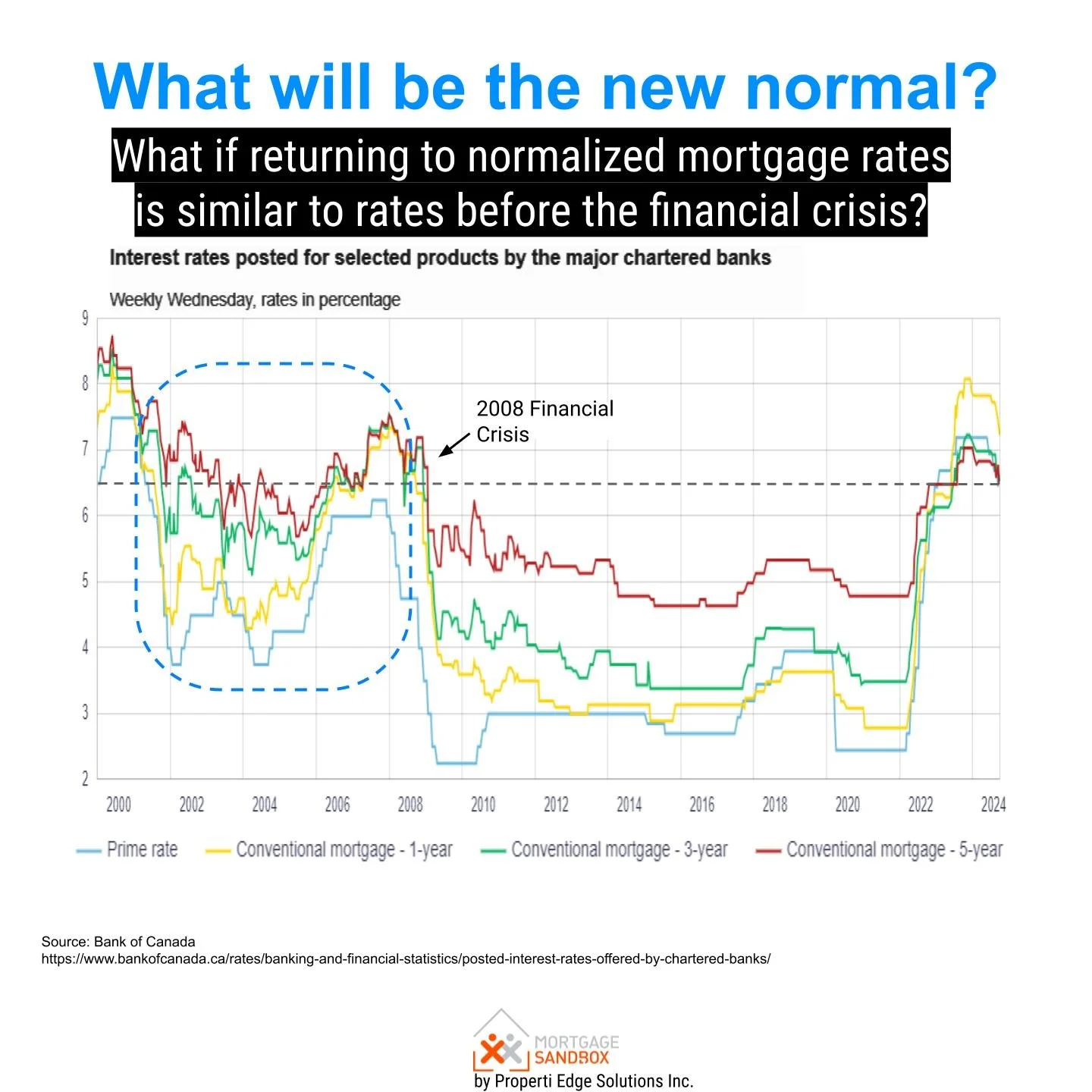 Instead, the "new normal" could see mortgage rates stabilizing in the 4-7% range, similar to the period between the dot-com bust and the financial crisis (2001 to 2007).